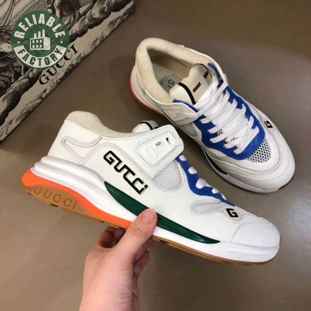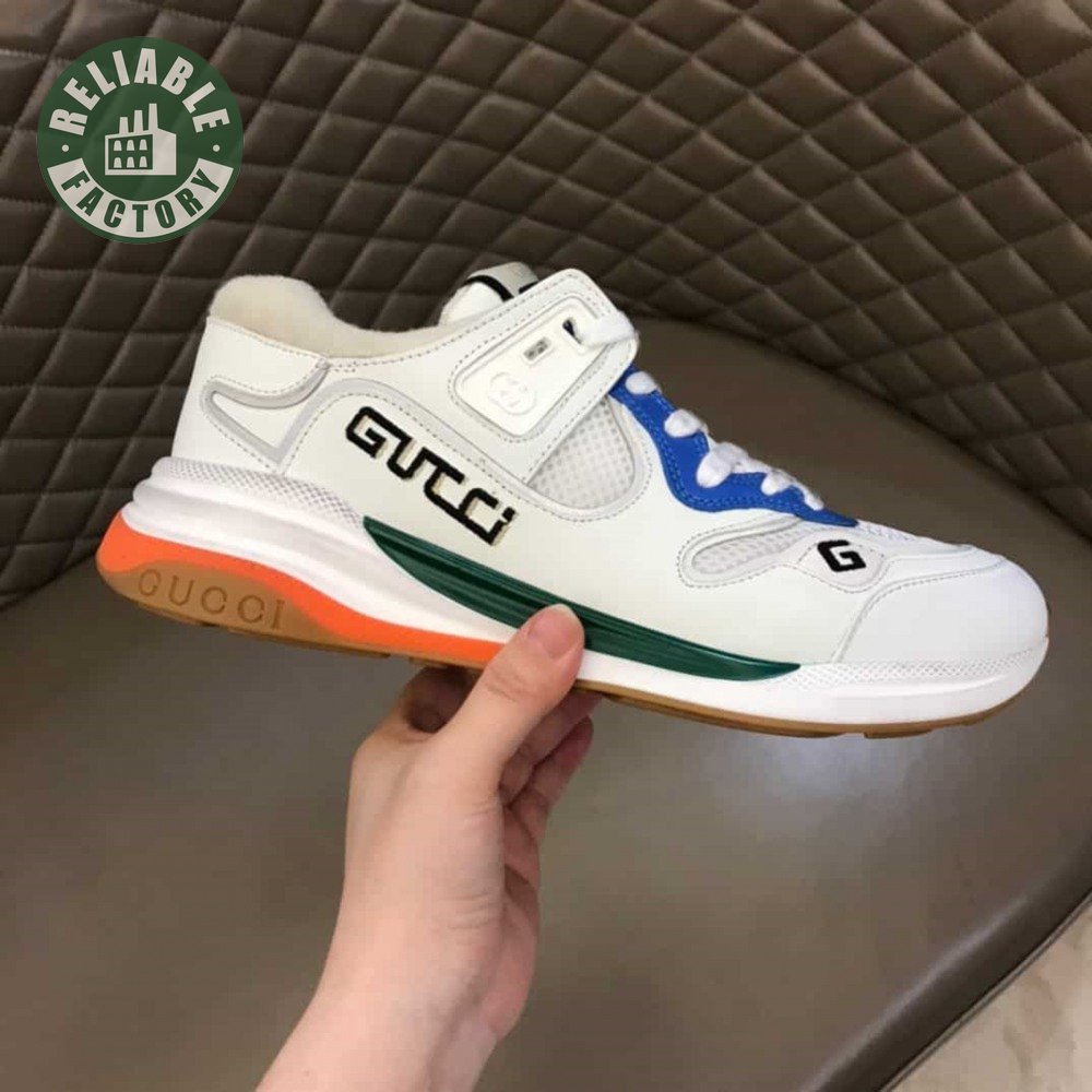 GUCCI G LINE SNEAKERS IN LEATHER AND MESH WITH EMBROIDERED LOGO - GC117